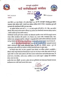 बिज्ञप्ती मार्फत उक्त घटनाका पिडितहरुलाई तत्काल उद्धार, राहात तथा पुनस्थपानाका काम गाँउपालिकाले प्राथमिकतामा राखेर गर्ने र प्रदेश तथा संघ सरकारको सहयोगका लागि ध्यानाकर्षणा गरिएको छ । घटनामा पशुबस्तु मरेको, बेपत्ता भएको र स्थानीयका धनमानको क्षेती भएको थियो ।