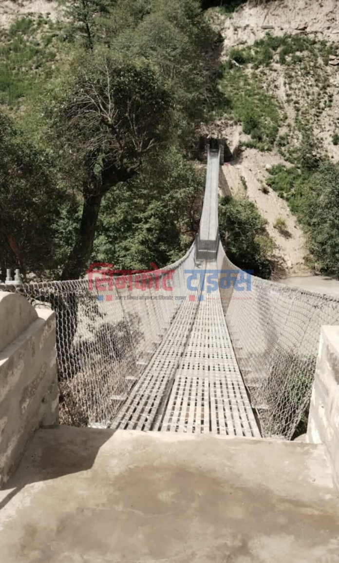 सिमकोट । खार्पुनाथ गाउँपालिका– १ र २ लाई जोड्नका लागि लालीबगरको लिगेमा कर्णाली नदी माथि नयाँ झोलुङ्गे पुल निर्माण गरिएको छ । नयाँ झोलुङ्गे पुल निर्माण भएर सञ्चालनमा आएसंगै सो स्थान भन्दा पचास मिटर पर यसअघि नदी तर्नका लागि निर्माण गरिएको तुईन बिस्थापित भएको हो ।