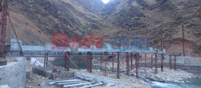 यता भौतिक प्रगति भने पचास प्रतिशत पुगेको छ । अब पुलको स्टिल पार्ट जडान कार्य मात्र बाँकी रहेको कारण दुई महिना भित्र सो कार्य सक्ने निर्माण कम्पनीले जनाएको छ । यसअघि सो पुलको निर्माण कार्य ढिलाई भएको भन्दै हुम्लावासीले उक्त नदीमा बेलिब्रीज माग गरे अनुसार हाल निर्माण भई रहेको पुल भन्दा केही माथि बेलिब्रीज निर्माण गरिएको छ ।