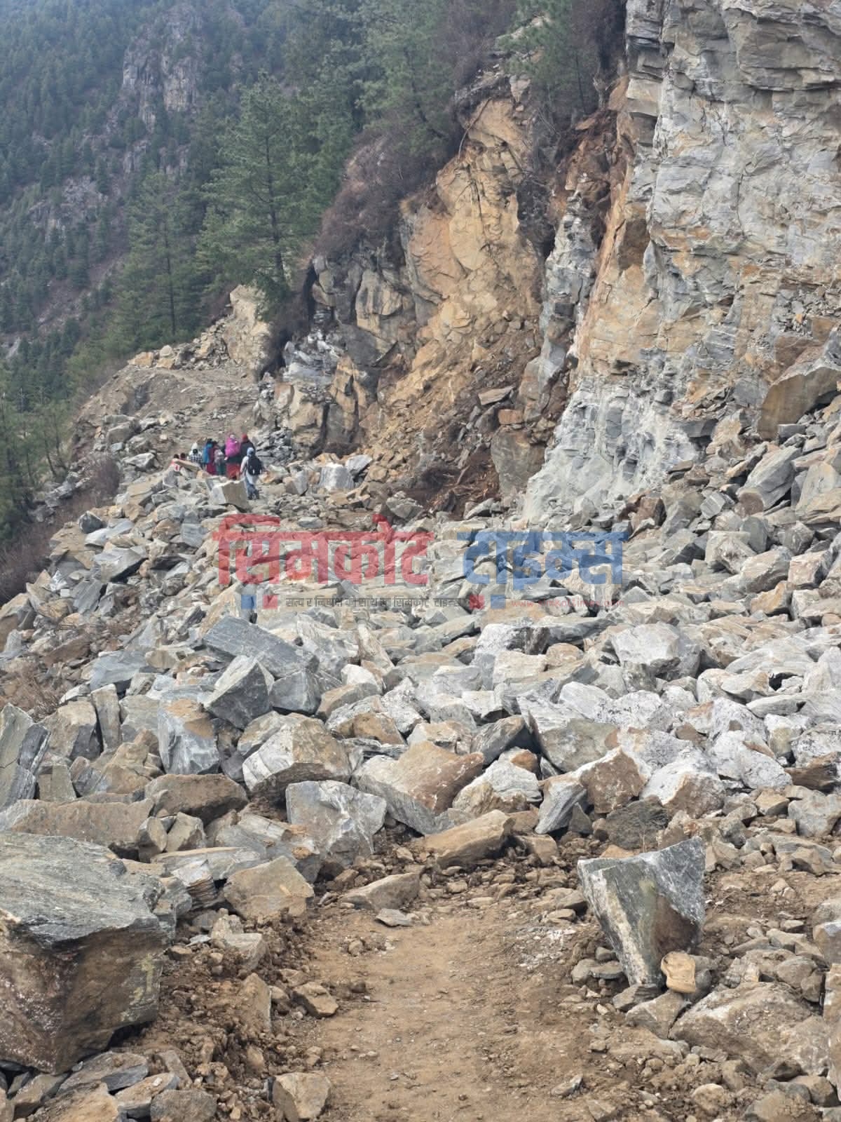 सिमकोट । सिमकोट हिल्सा सडकको लाग्ना खण्डमा सिमकोट गाउँपालिका– ७ को डाँडाफयाँका स्थानीयद्धारा सडक अबरुद्ध भएको छ । सो क्षेत्रको सडक निर्माणका क्रममा चट्टान बिष्फोट गर्दा खसेका ढुङ्गाले सामुदायीक बनमा क्षेती पुर्याएको भन्दै स्थानीयले सडक अबरुद्ध गरेका हुन ।