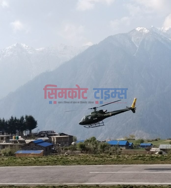 सिमकोट । हुम्ला जिल्लाको खार्पुनाथ गाउँपालिका–५ बाम्टाकी ३५ वर्षीया सरिला शाहीलाई आइतबार बिहान नेपाली सेनाको हेलिकप्टरमार्फत जिल्ला बाहिर उद्धार गरिएको छ ।